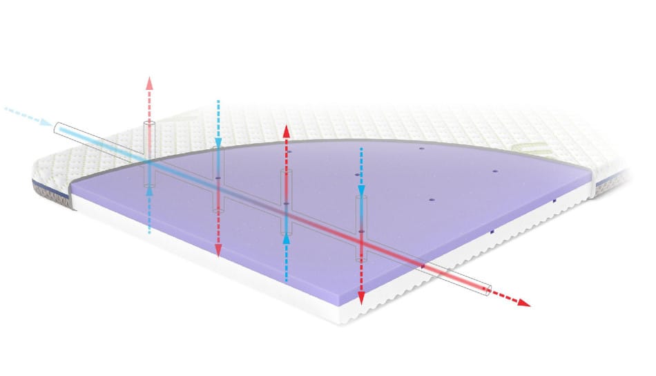 pianka wysokoelastyczna, antybakteryjna HR35 (pianka fioletowa) pionowe kanały powietrzne na całej powierzchni materaca – rozwiązanie niespotykane w innych materacach na rynku