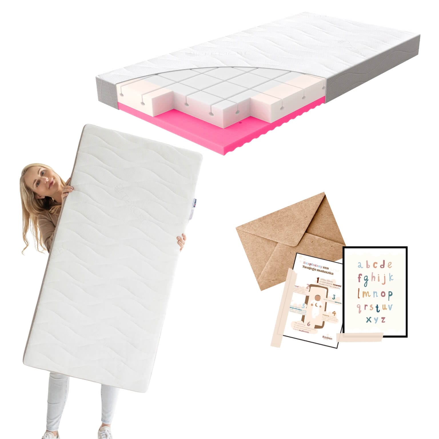 Materac Rucken x FizjoMommy Baby został wykonany z kolumn piankowych oraz pianki HR50, zapewnia doskonałe wsparcie i komfort snu.